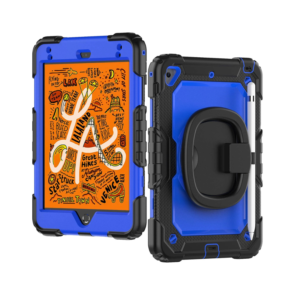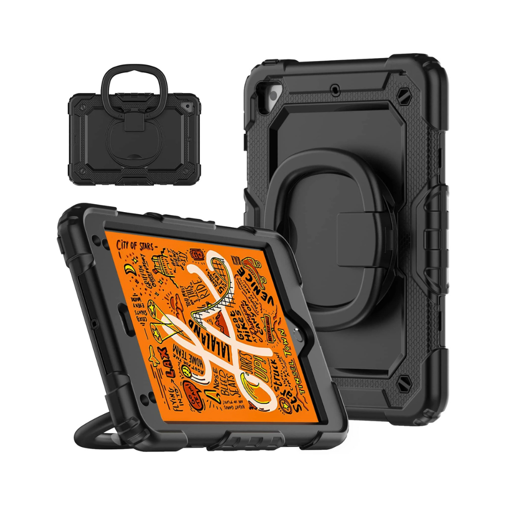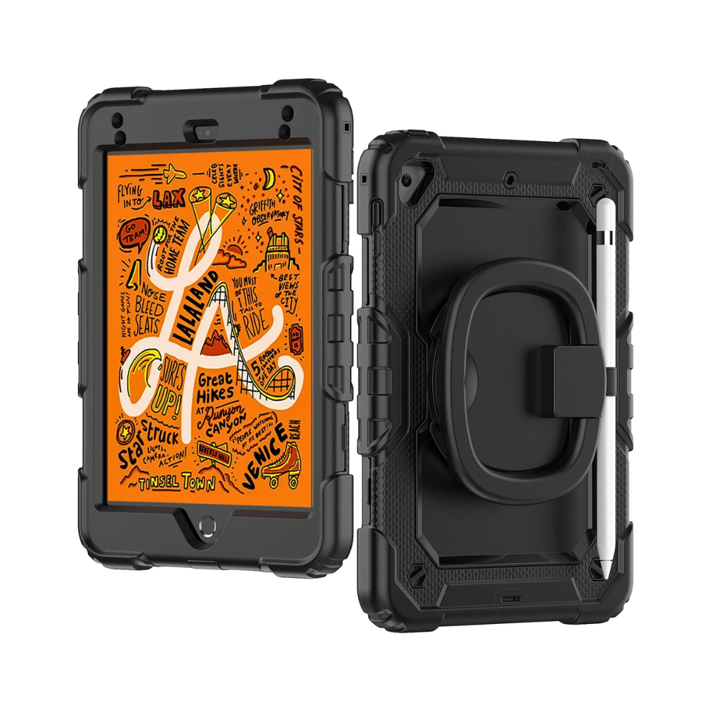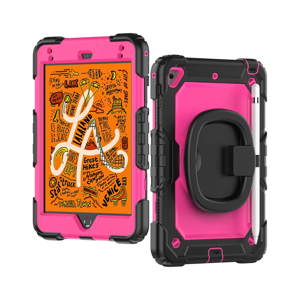 The full-body protector ensures your iPad Mini remains shielded from scratches, dust, and debris while providing full access to all ports and buttons. Featuring a 360° rotatable built-in kickstand, adjustable hand strap, and adjustable shoulder strap, this case is more portable and versatile than other brands!