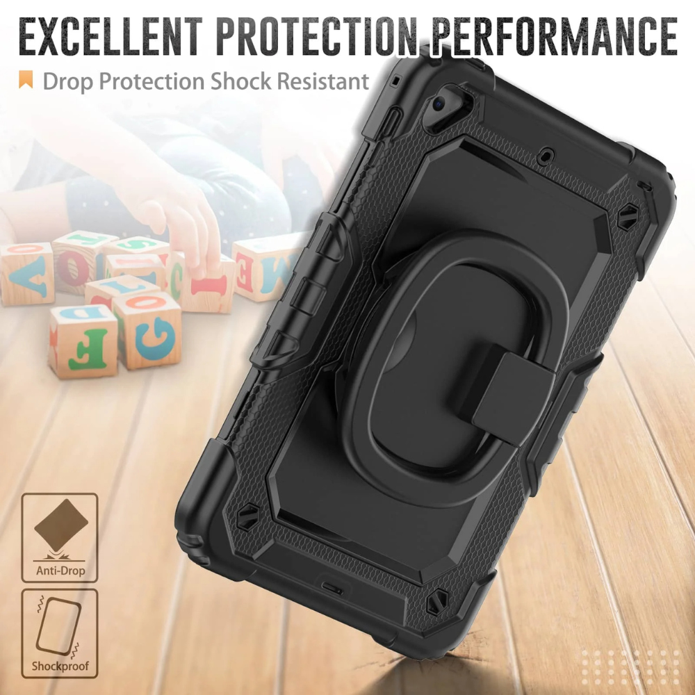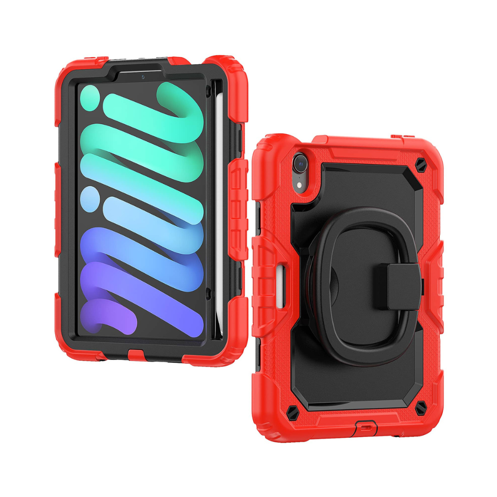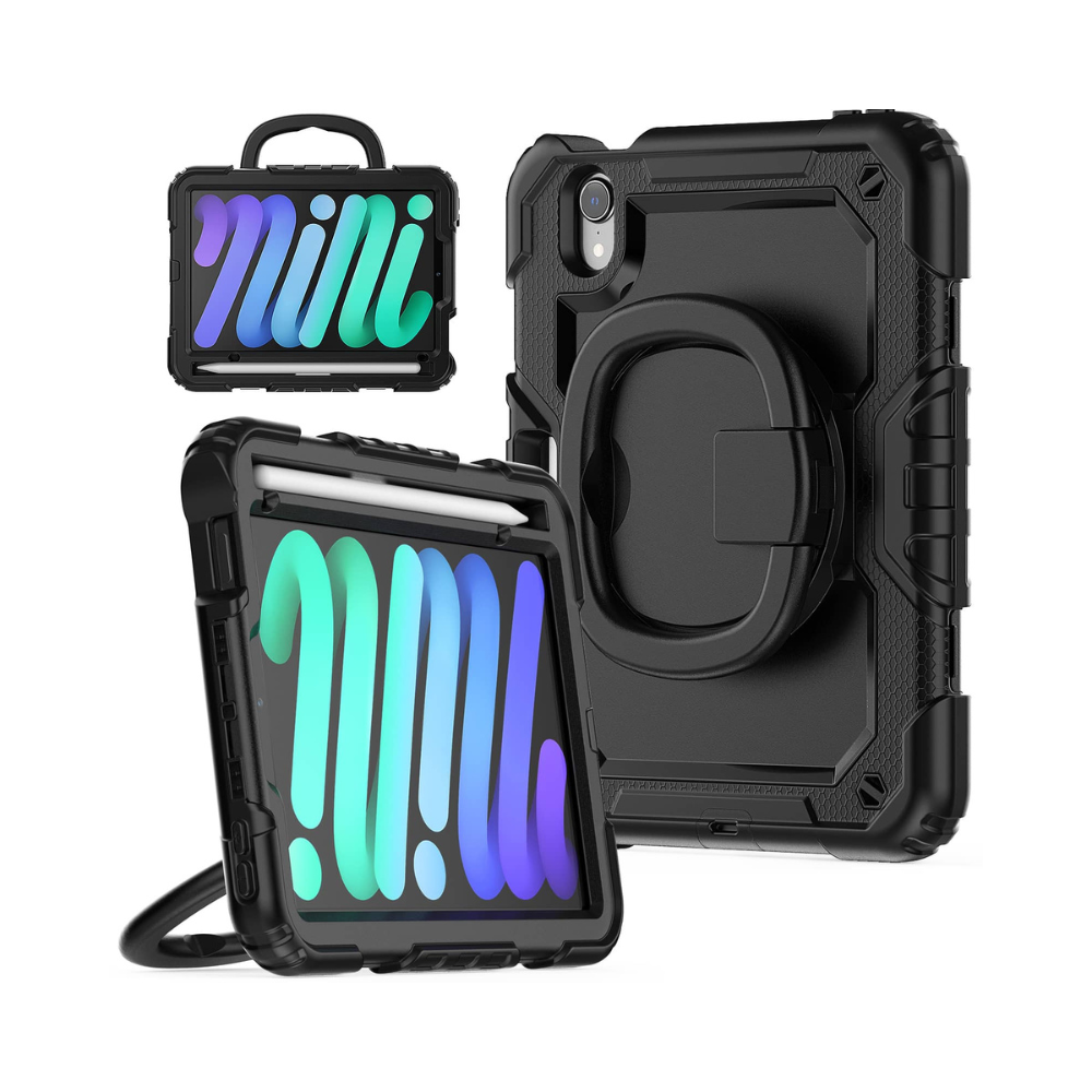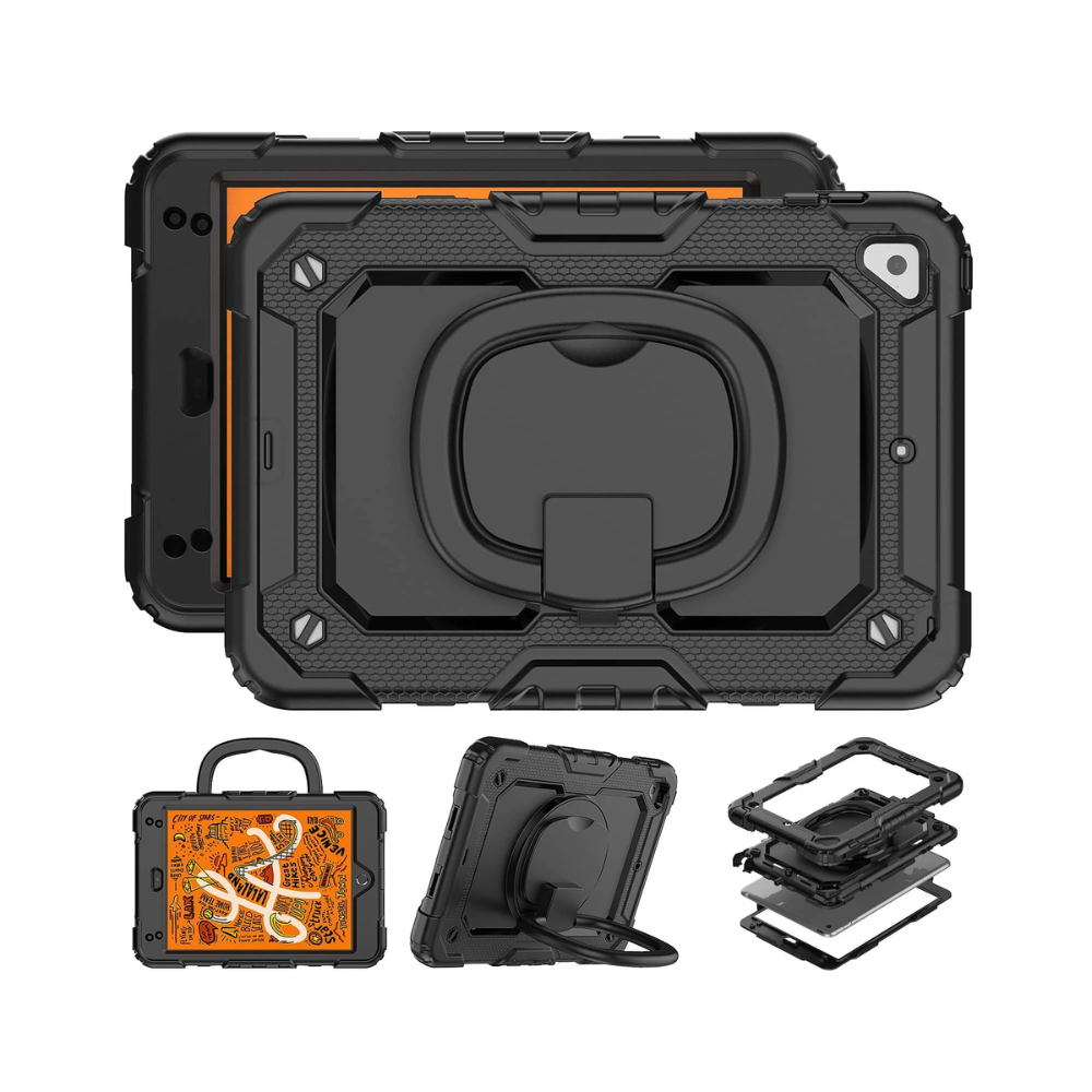 The full-body protector ensures your iPad Mini remains shielded from scratches, dust, and debris while providing full access to all ports and buttons. Featuring a 360° rotatable built-in kickstand, adjustable hand strap, and adjustable shoulder strap, this case is more portable and versatile than other brands!