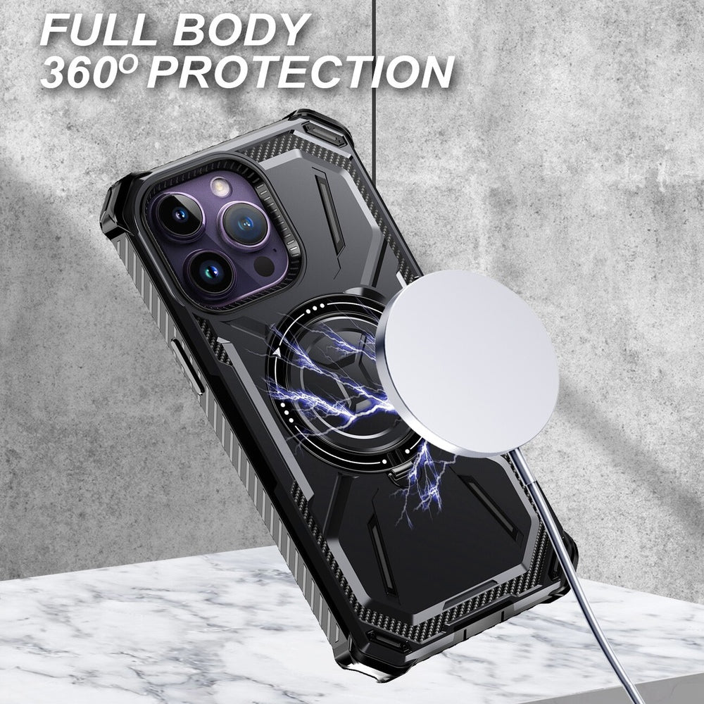 The Inferna Heavy Duty Shockproof iPhone Case with MagSafe Compatible Kickstand is a robust and reliable phone case engineered to provide unmatched protection and convenience. This cutting-edge case is packed with innovative features to keep your device safe, functional, and stylish.